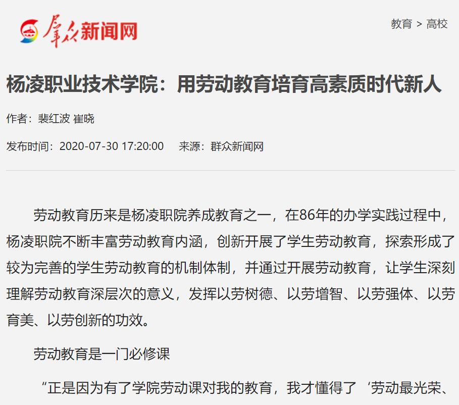 【群众新闻网】杨凌职业技术学院:用劳动教育培育高素质时代新人