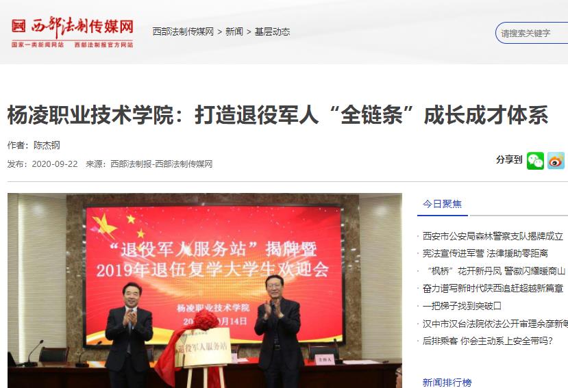 【西部法制传媒网】杨凌职业技术学院:打造退役军人“全链条”成长成才体系