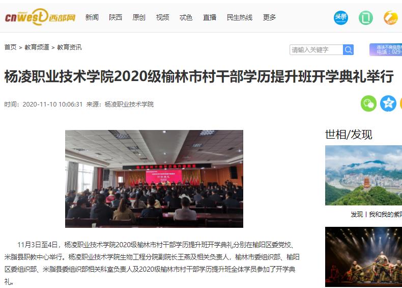 11月3日至4日,杨凌职业技术学院2020级榆林市村干部学历提升班开学典礼分别在榆阳区委党校、米脂县职教中心举行。杨凌职业技术学院生物工程分院副院长王燕及相关负责人,榆林市委组织部、榆阳区委组织部、米脂县委组织部相关科室负责人及2020级榆林市村干部学历提升班全体学员参加了开学典礼。