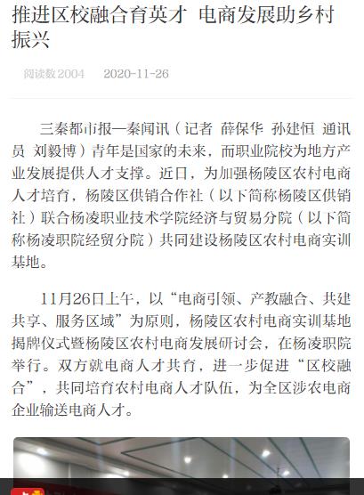 【三秦都市报—秦闻】推进区校融合育英才 电商发展助乡村振兴