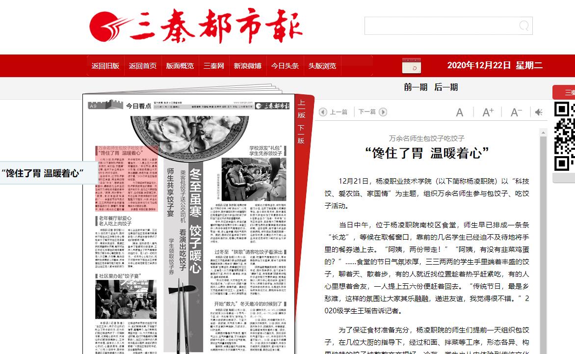 12月21日,杨凌职业技术学院(以下简称杨凌职院)以“科技饺、爱农馅、家国情”为主题,组织万余名师生参与包饺子、吃饺子活动。