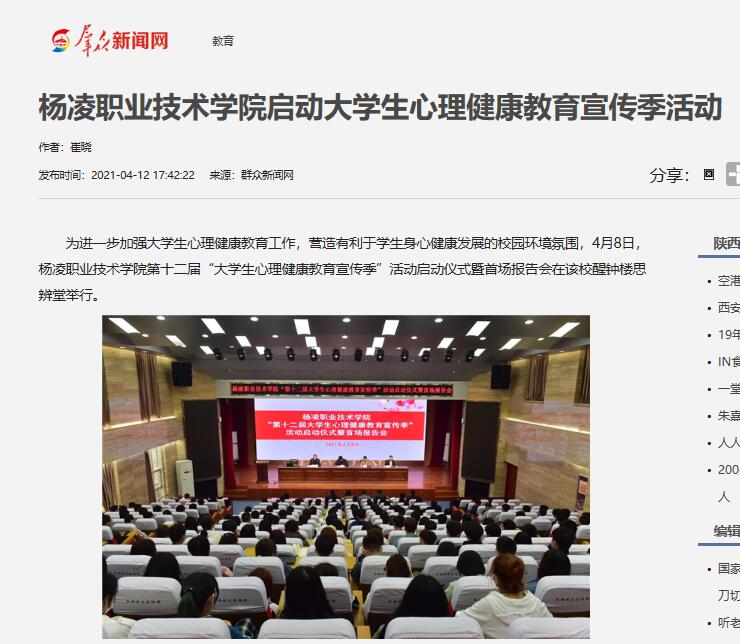 【群众新闻网】杨凌职业技术学院启动大学生心理健康教育宣传季活动