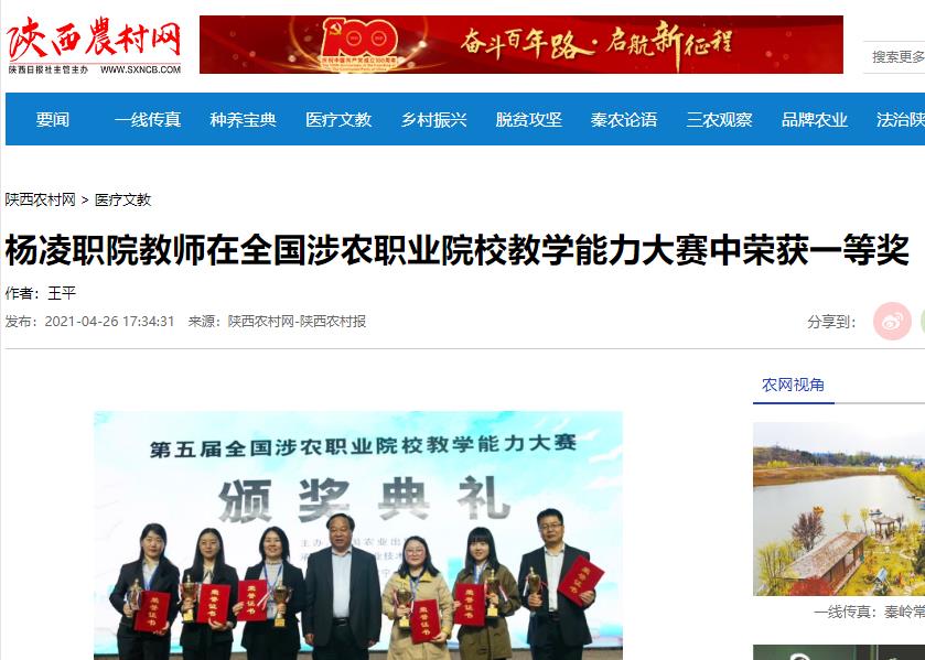 【陕西农村网】杨凌职院教师在全国涉农职业院校教学能力大赛中荣获一等奖
