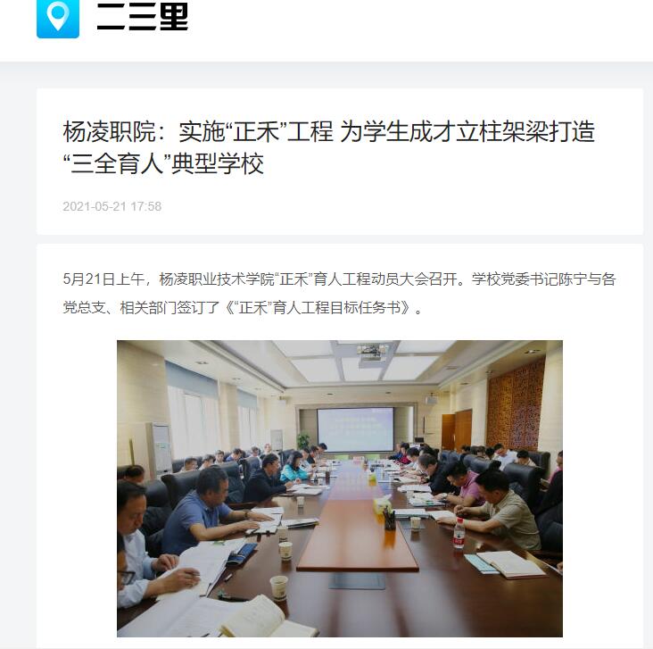 【二三里】杨凌职院:实施“正禾”工程 为学生成才立柱架梁 打造“三全育人”典型学校