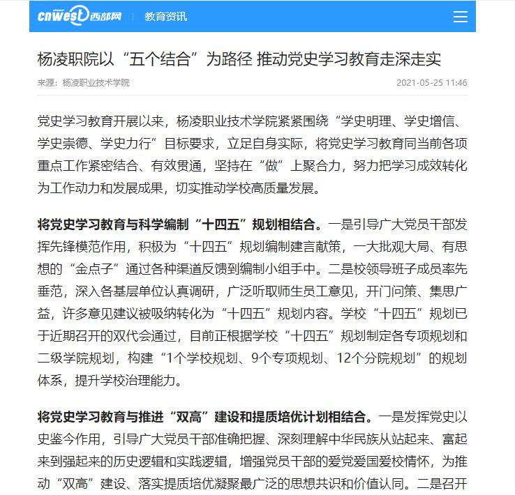 【西部网】杨凌职院以“五个结合”为路径 推动党史学习教育走深走实