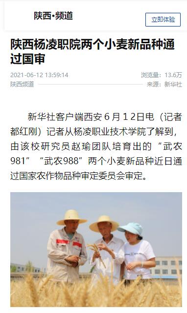 【新华社】陕西杨凌职院两个小麦新品种通过国审