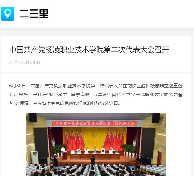 【二三里】中国共产党杨凌职业技术学院第二次代表大会召开