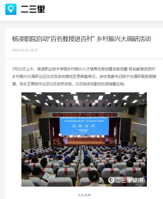 【二三里】杨凌职院启动“百名教授进百村” 乡村振兴大调研活动