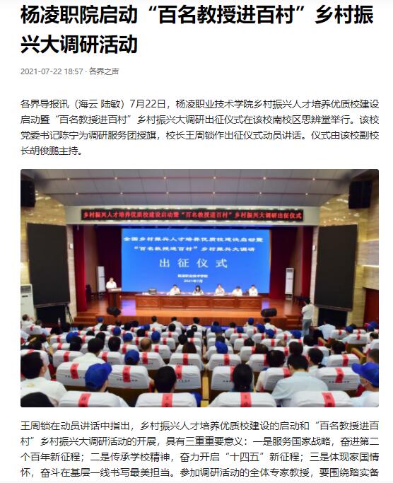 【今日头条】杨凌职院启动“百名教授进百村”乡村振兴大调研活动