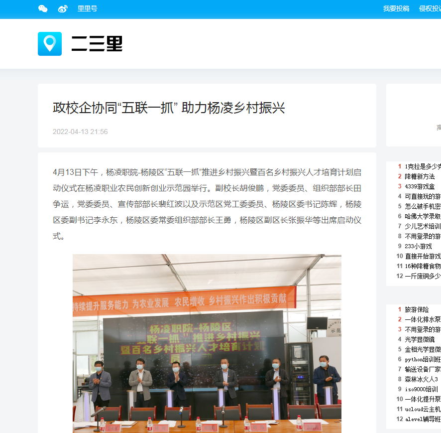 参加启动仪式的还有杨凌职院科技与教育研究处、继续教育与培训学院相关负责人,承担“五联一抓”工作的15个包抓工作队队长,以及示范区、杨陵区相关部门、各镇办负责人,15个包抓村的党支部书记。