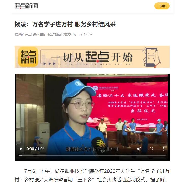 7月6日下午,杨凌职业技术学院举行2022年大学生“万名学子进万村”乡村振兴大调研暨暑期“三下乡”社会实践活动启动仪式。据了解,此次活动包括“乡村振兴青春建功”实践活动、经典润乡土计划实践活动、“美丽中国·青春行动”生态环保实践活动、农村地区教育发展实践活动、“争做禁毒先锋守‘尉’无毒家园”青少年禁毒防艾宣传教育实践活动、“情暖童心”关爱留守儿童实践活动6个专项活动,目前,杨凌职业技术学院已组建了22支社会实践团队,上万名学生参加活动,希望通过社会实践活动不断提高自身综合素质,为广大群众提供扎实有效的服务,努力成为理想远大、视野开阔、知识丰富、开拓进取的新青年。(记者:王锦 杨凌台 李宁 许正斌 )