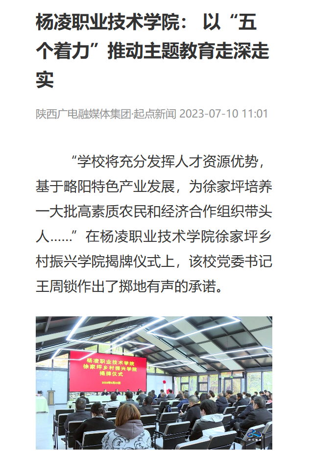 【起点新闻】杨凌职业技术学院: 以“五个着力”推动主题教育走深走实