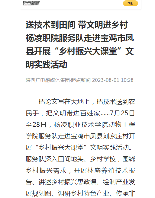 【起点新闻】送技术到田间 带文明进乡村 杨凌职院服务队走进宝鸡市凤县开展“乡村振兴大课堂”文明实践活动