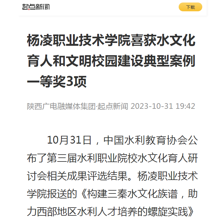 【起点新闻】杨凌职业技术学院喜获水文化育人和文明校园建设典型案例一等奖3项
