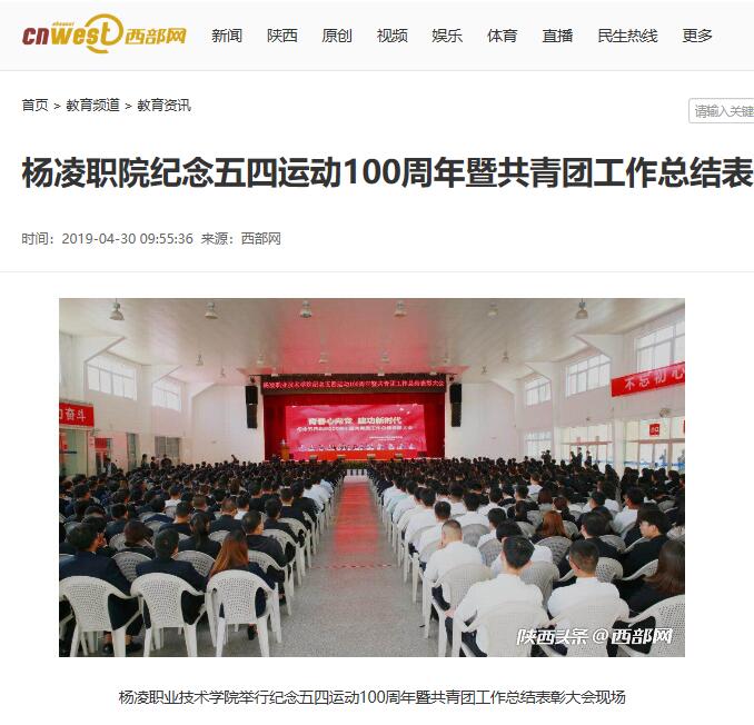 【西部网】杨凌职院纪念五四运动100周年暨共青团工作总结表彰大会成功举行