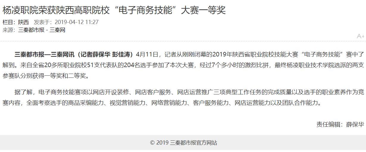 【三秦都市报】杨凌职院荣获陕西高职院校“电子商务技能”大赛一等奖