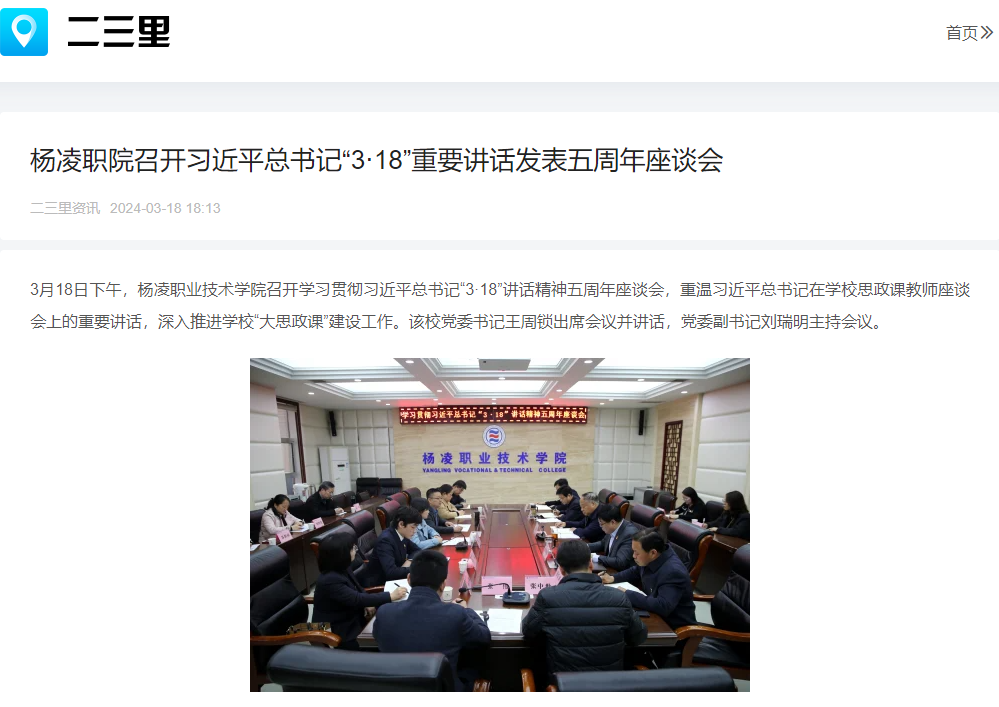 【二三里】杨凌职院召开习近平总书记“3·18”重要讲话发表五周年座谈会