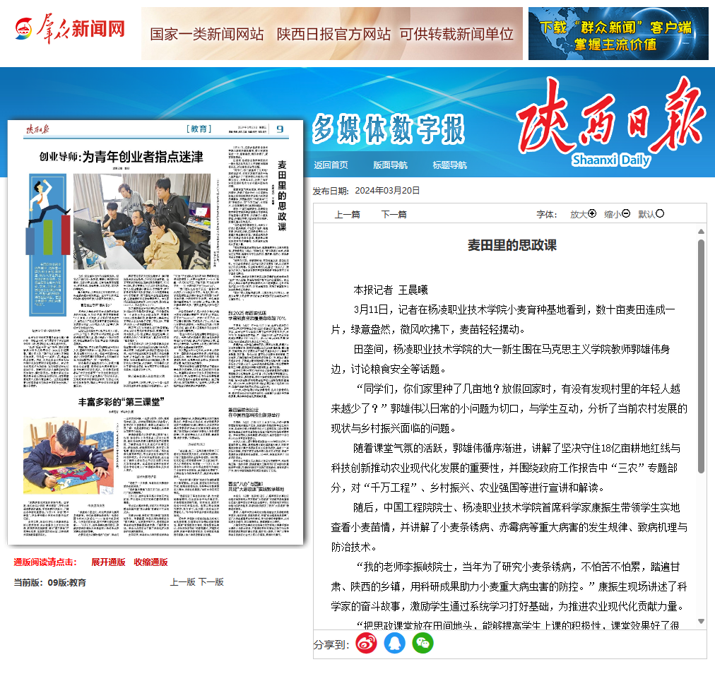 【陕西日报】麦田里的思政课