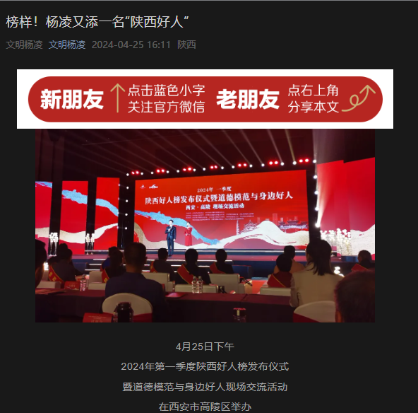 【文明杨凌】榜样!杨凌又添一名“陕西好人”