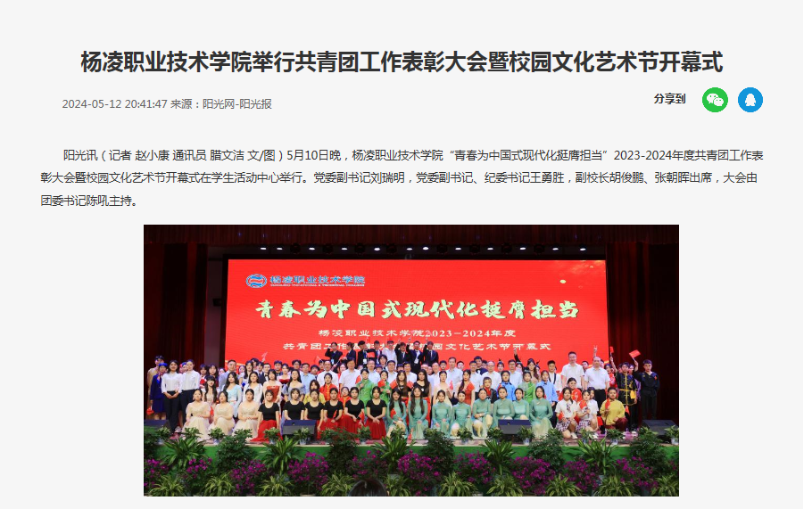 【阳光网】杨凌职业技术学院举行共青团工作表彰大会暨校园文化艺术节开幕式