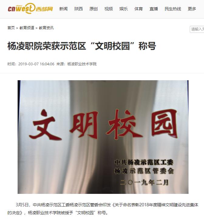 3月5日,中共杨凌示范区工委杨凌示范区管委会印发《关于命名表彰2018年度精神文明建设先进集体的决定》,杨凌职业技术学院被授予“文明校园”称号。
