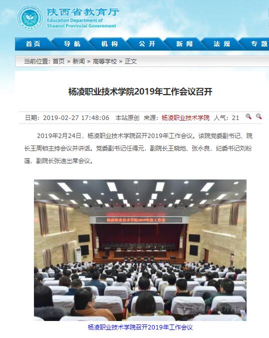 【陕西省教育厅】杨凌职业技术学院2019年工作会议召开