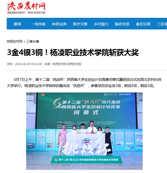 【陕西农村网】3金4银3铜!杨凌职业技术学院斩获大奖