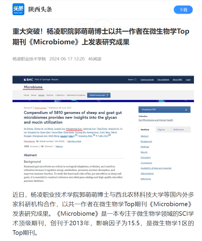 【陕西头条】重大突破!杨凌职院郭萌萌博士以共一作者在微生物学Top期刊《Microbiome》上发表研究成果
