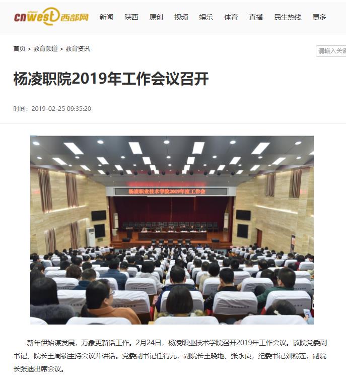 新年伊始谋发展,万象更新话工作。2月24日,杨凌职业技术学院召开2019年工作会议。该院党委副书记、院长王周锁主持会议并讲话。党委副书记任得元,副院长王晓地、张永良,纪委书记刘粉莲,副院长张迪出席会议。