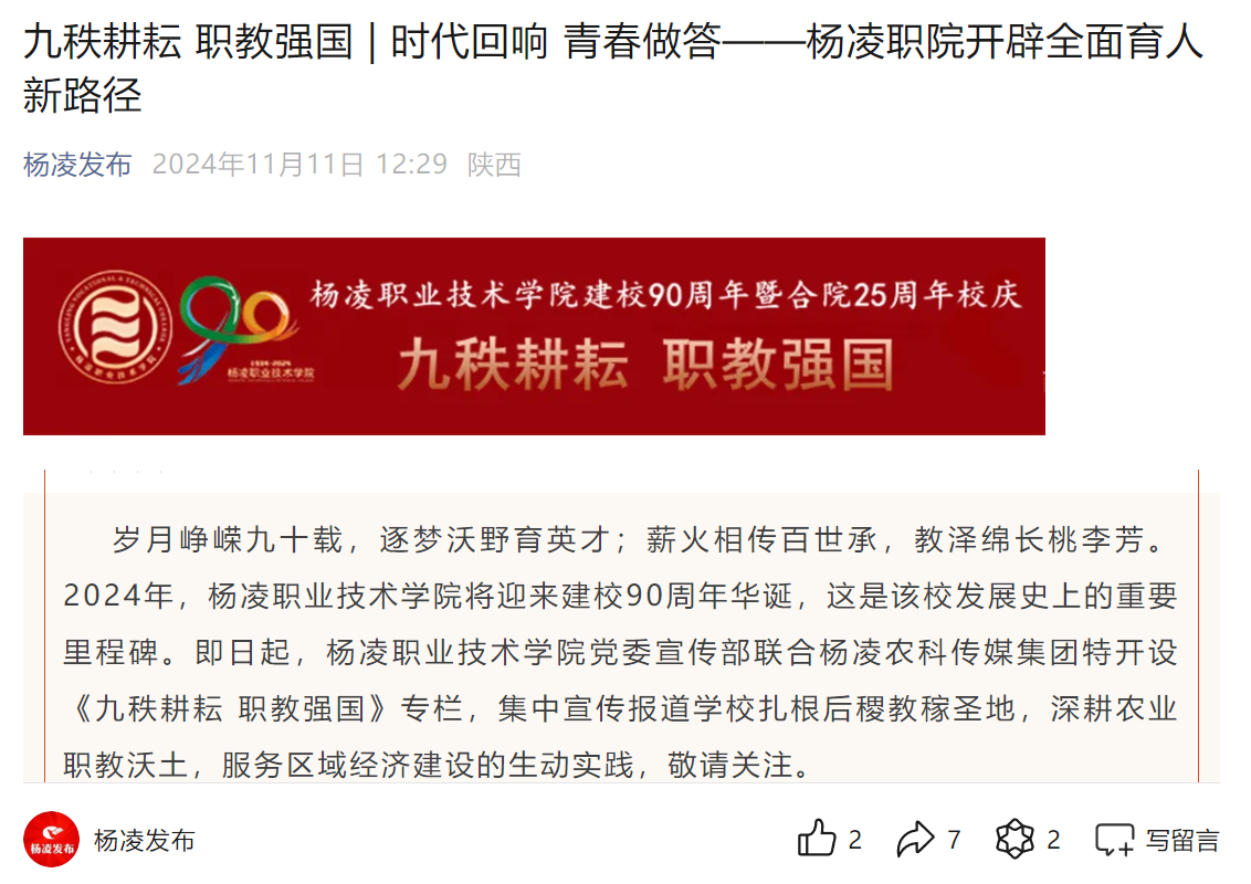 【杨凌发布】九秩耕耘 职教强国 | 时代回响 青春做答——杨凌职院开辟全面育人新路径