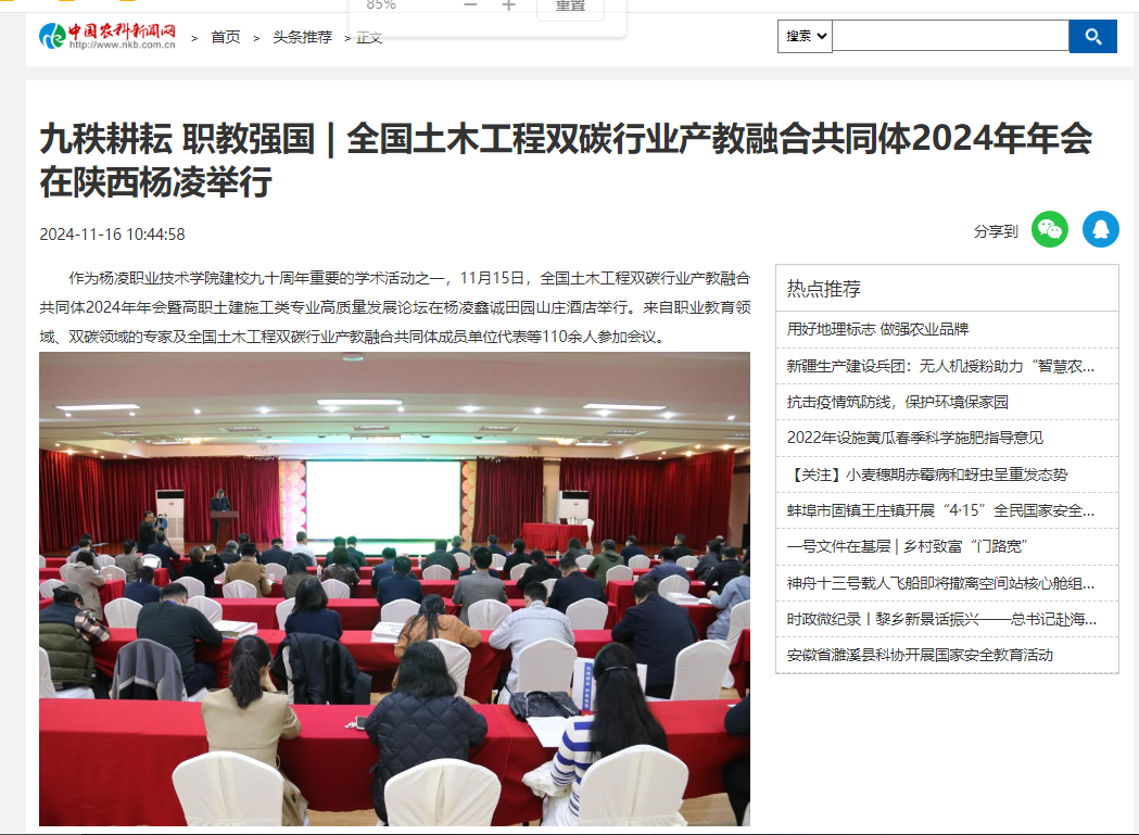 【中国农村新闻网】九秩耕耘 职教强国 | 全国土木工程双碳行业产教融合共同体2024年年会在陕西杨凌举行