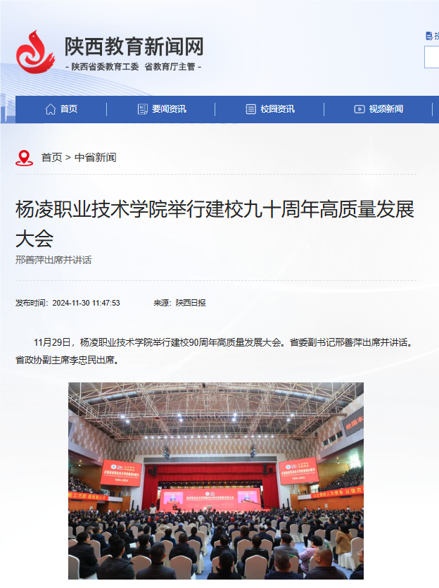 【陕西教育新闻网】杨凌职业技术学院举行建校九十周年高质量发展大会邢善萍出席并讲话