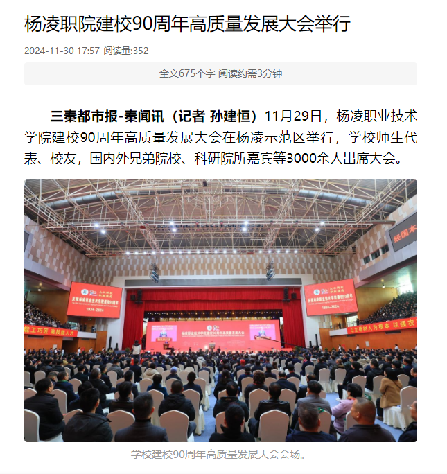 【三秦都市报】杨凌职院建校90周年高质量发展大会举行