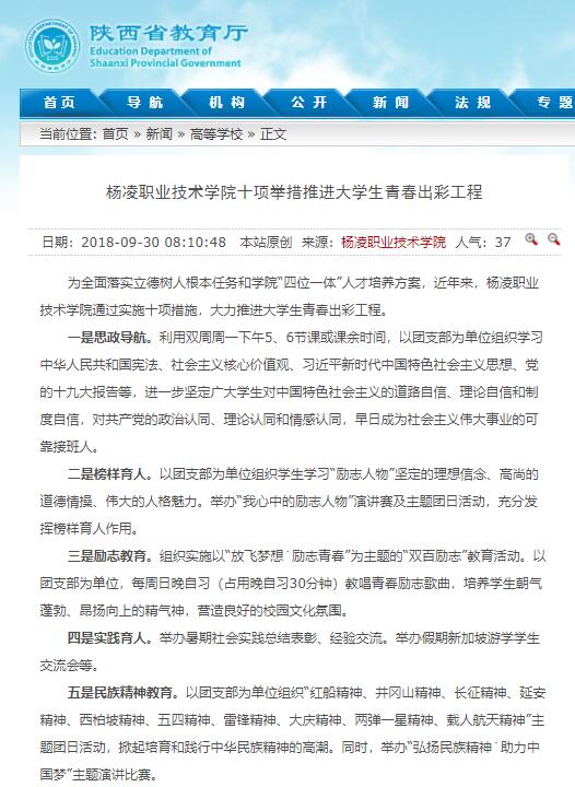 【陕西省教育厅】杨凌职业技术学院十项举措推进大学生青春出彩工程