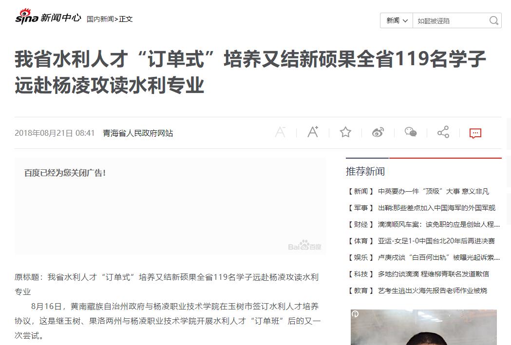 【新浪网】我省水利人才“订单式”培养又结新硕果全省119名学子远赴杨凌攻读水利专业