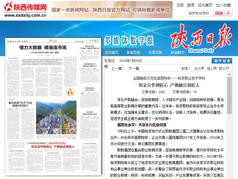 深化产教融合,促进教育链、人才链与产业链、创新链有机衔接,是当前高等职业教育改革的重要内容。近年来,杨凌职院积极探索校企合作办学新模式,在加强专业建设、优化师资队伍、创新人才培养、拓展实训基地、促进学生就业等方面取得了一系列成果。