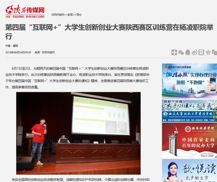 6月1日至2日,为期两天的第四届中国“互联网+”大学生创新创业大赛陕西赛区训练营在杨凌职业技术学院举行。此次训练营由陕西省教育厅主办,杨凌职业技术学院承办,旨在贯彻落实《教育部关于举办第四届中国“互联网+”大学生创新创业大赛的通知》精神,全面推进第四届陕西省大赛组织工作,提高参赛项目质量。
