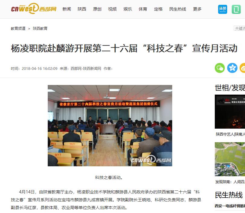 【西部网】杨凌职院赴麟游开展第二十六届“科技之春”宣传月活动