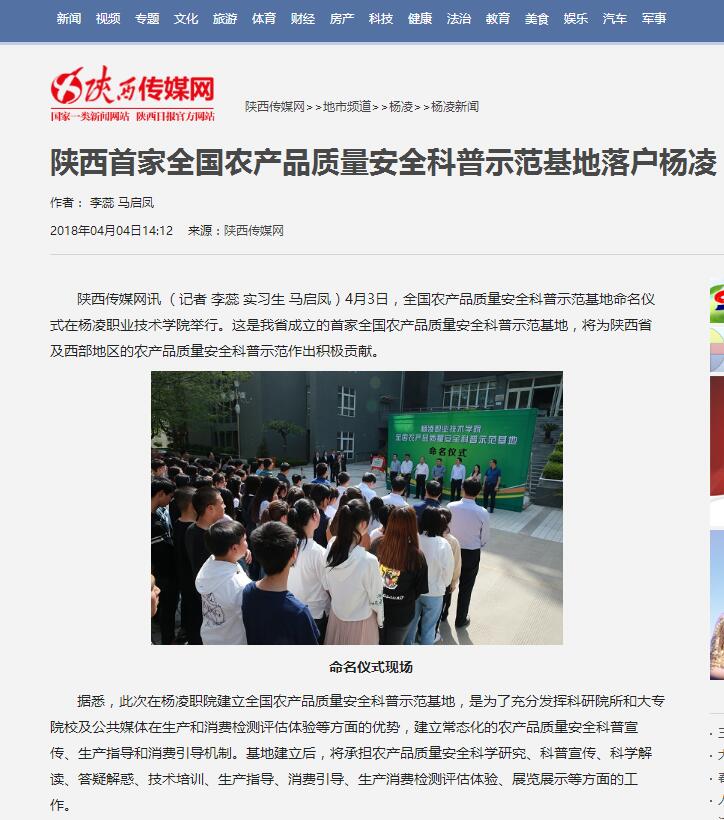 【陕西传媒网】陕西首家全国农产品质量安全科普示范基地落户杨凌