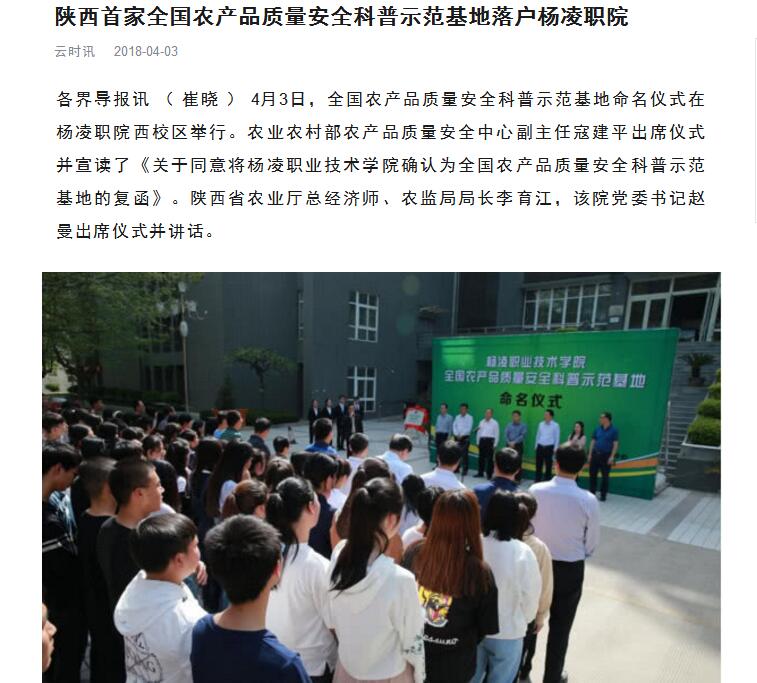 【各界导报】陕西首家全国农产品质量安全科普示范基地落户杨凌职院