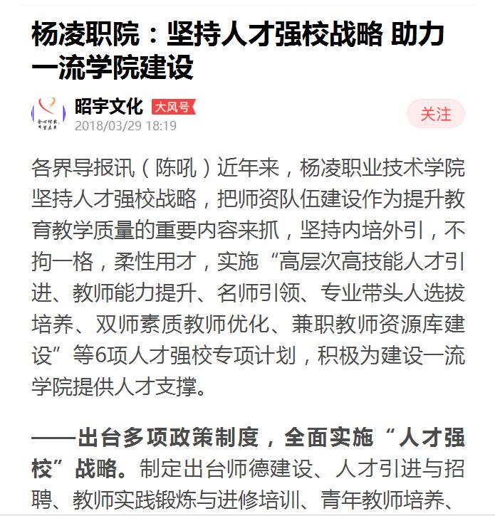 【各界导报】杨凌职院:坚持人才强校战略 助力一流学院建设