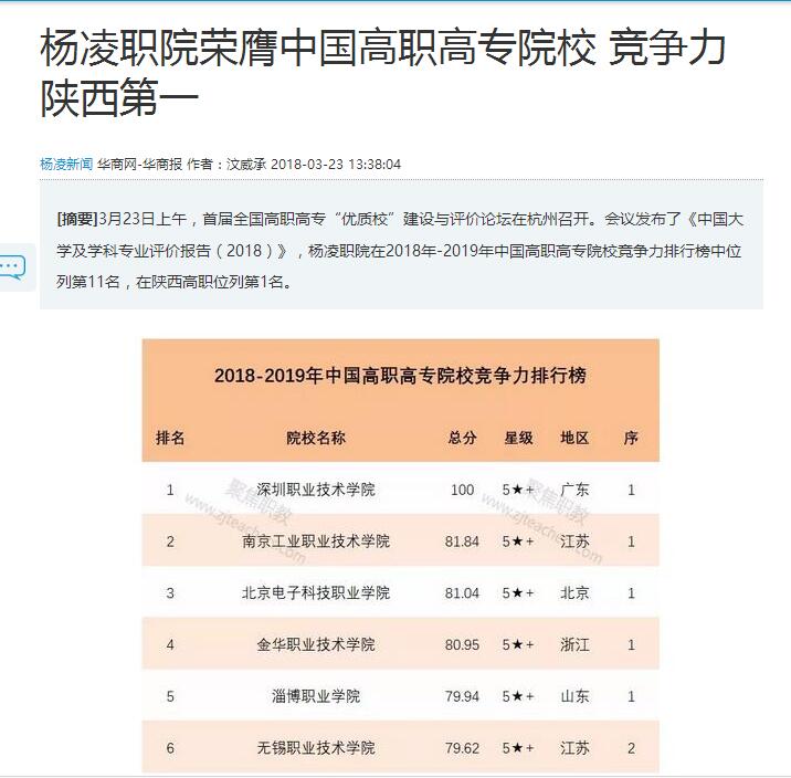 【华商网】杨凌职院荣膺中国高职高专院校竞争力陕西第一