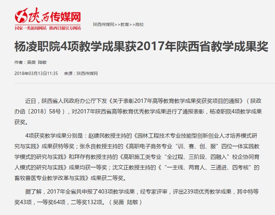 【陕西传媒网】杨凌职院4项教学成果获2017年陕西省教学成果奖