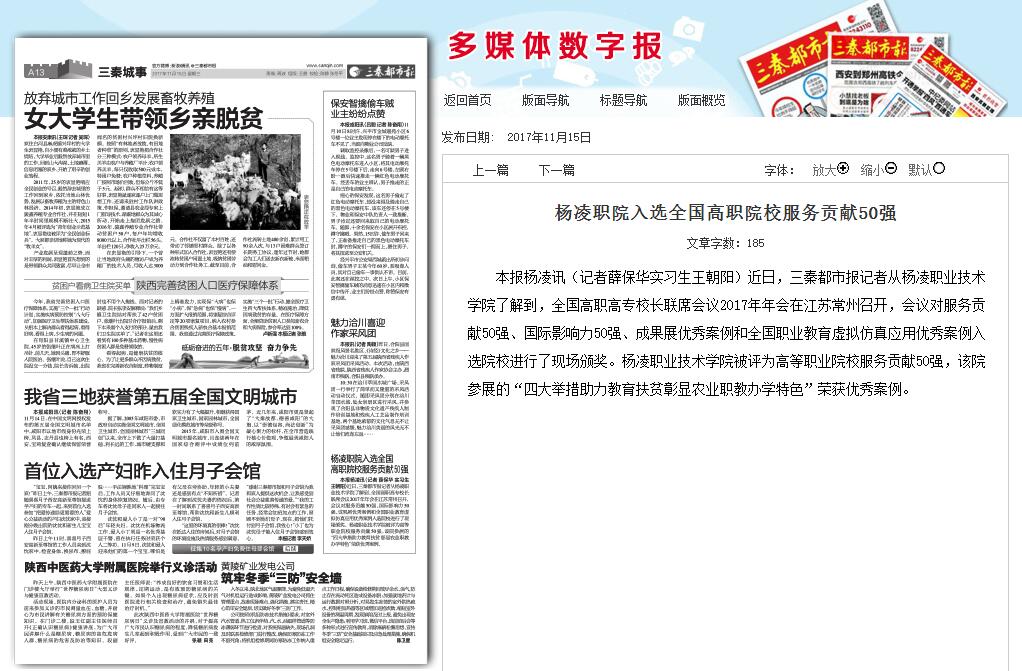 【三秦都市报】杨凌职院入选全国高职院校服务贡献50强