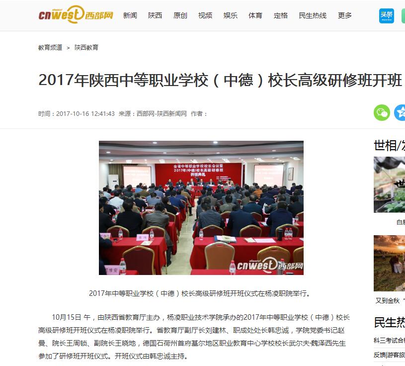 2017年中等职业学校(中德)校长高级研修班开班仪式在杨凌职院举行。