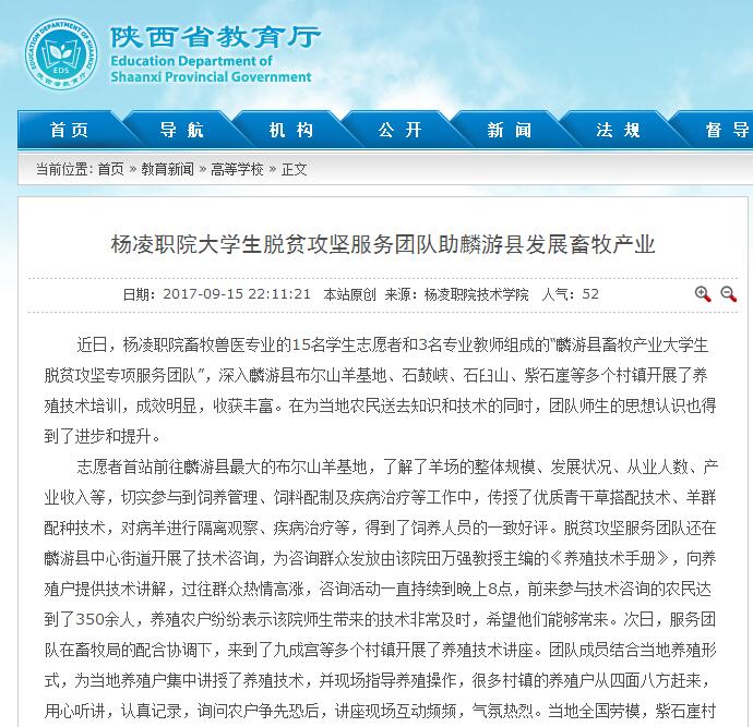 近日,杨凌职院畜牧兽医专业的15名学生志愿者和3名专业教师组成的“麟游县畜牧产业大学生脱贫攻坚专项服务团队”,深入麟游县布尔山羊基地、石鼓峡、石臼山、紫石崖等多个村镇开展了养殖技术培训,成效明显,收获丰富。在为当地农民送去知识和技术的同时,团队师生的思想认识也得到了进步和提升。