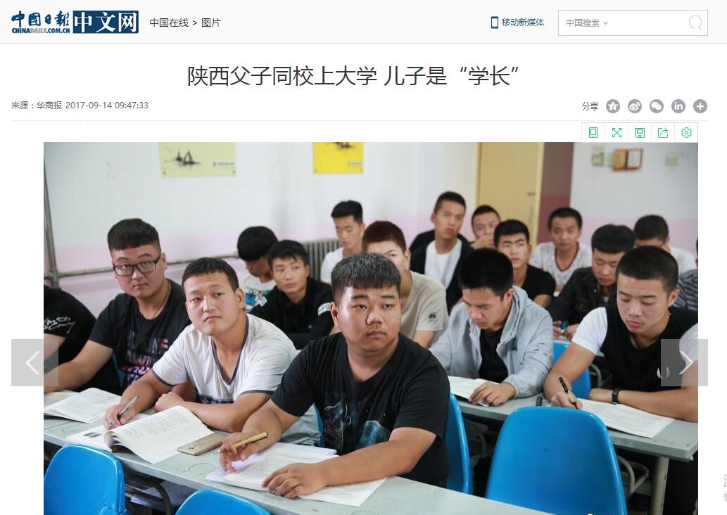 【中文网】陕西父子同校上大学 儿子是“学长”