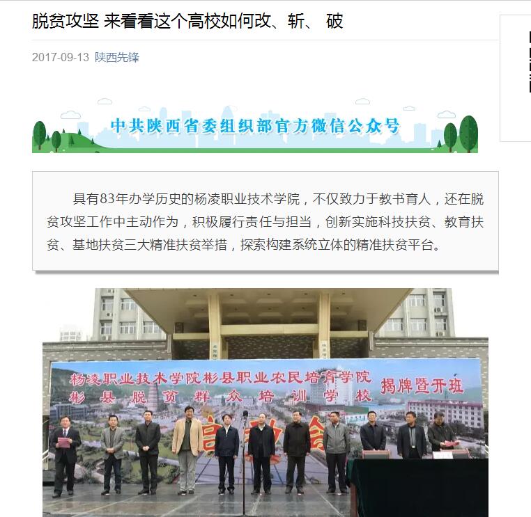 具有83年办学历史的杨凌职业技术学院,不仅致力于教书育人,还在脱贫攻坚工作中主动作为,积极履行责任与担当,创新实施科技扶贫、教育扶贫、基地扶贫三大精准扶贫举措,探索构建系统立体的精准扶贫平台。