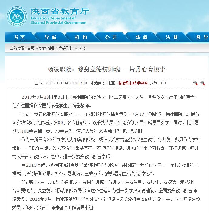 【陕西省教育厅】杨凌职院:修身立德铸师魂 一片丹心育桃李