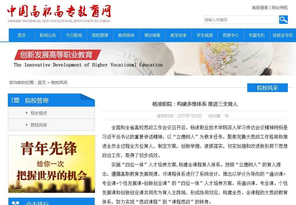 【中国高职高专教育网】杨凌职院:构建多维体系 推进三全育人